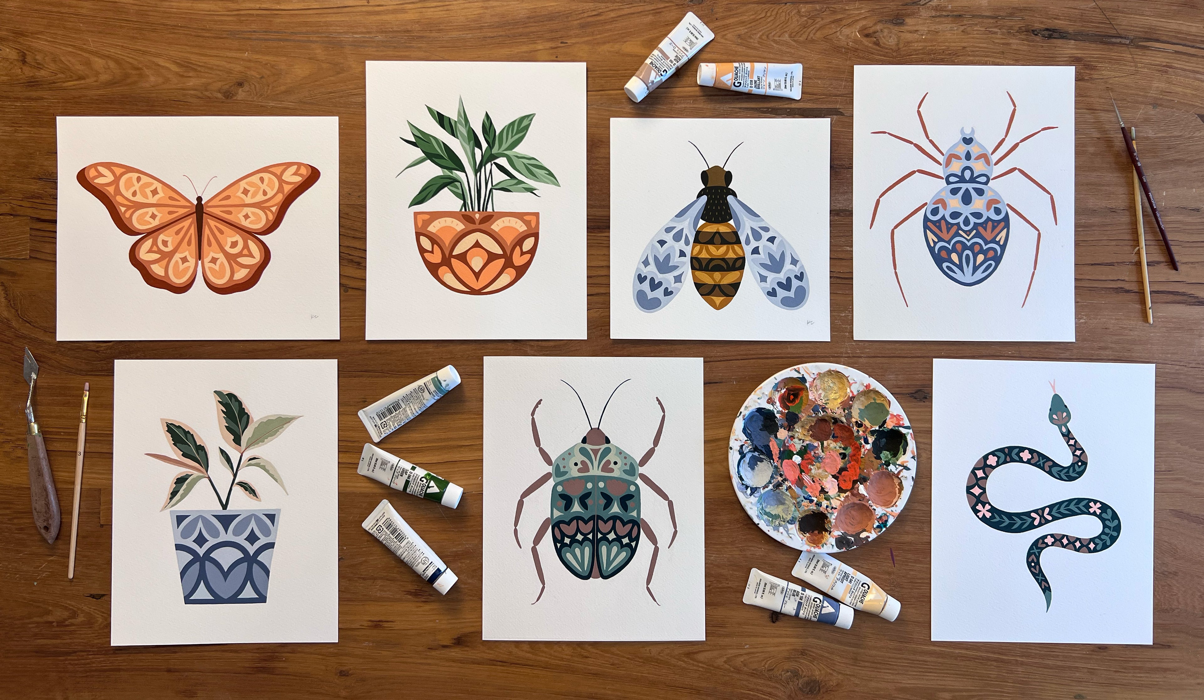 Kelly Colna creates original art using acrylic gouache paint out of her home studio in Columbus, Ohio.